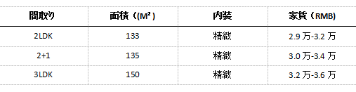 ・ 税金、物業管理費、光熱費(10元/M²)、インターネット(共通回線)使用料金込み;