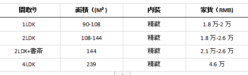 ・ 税金、物業管理費、インターネット(共通回線)使用料金込み;